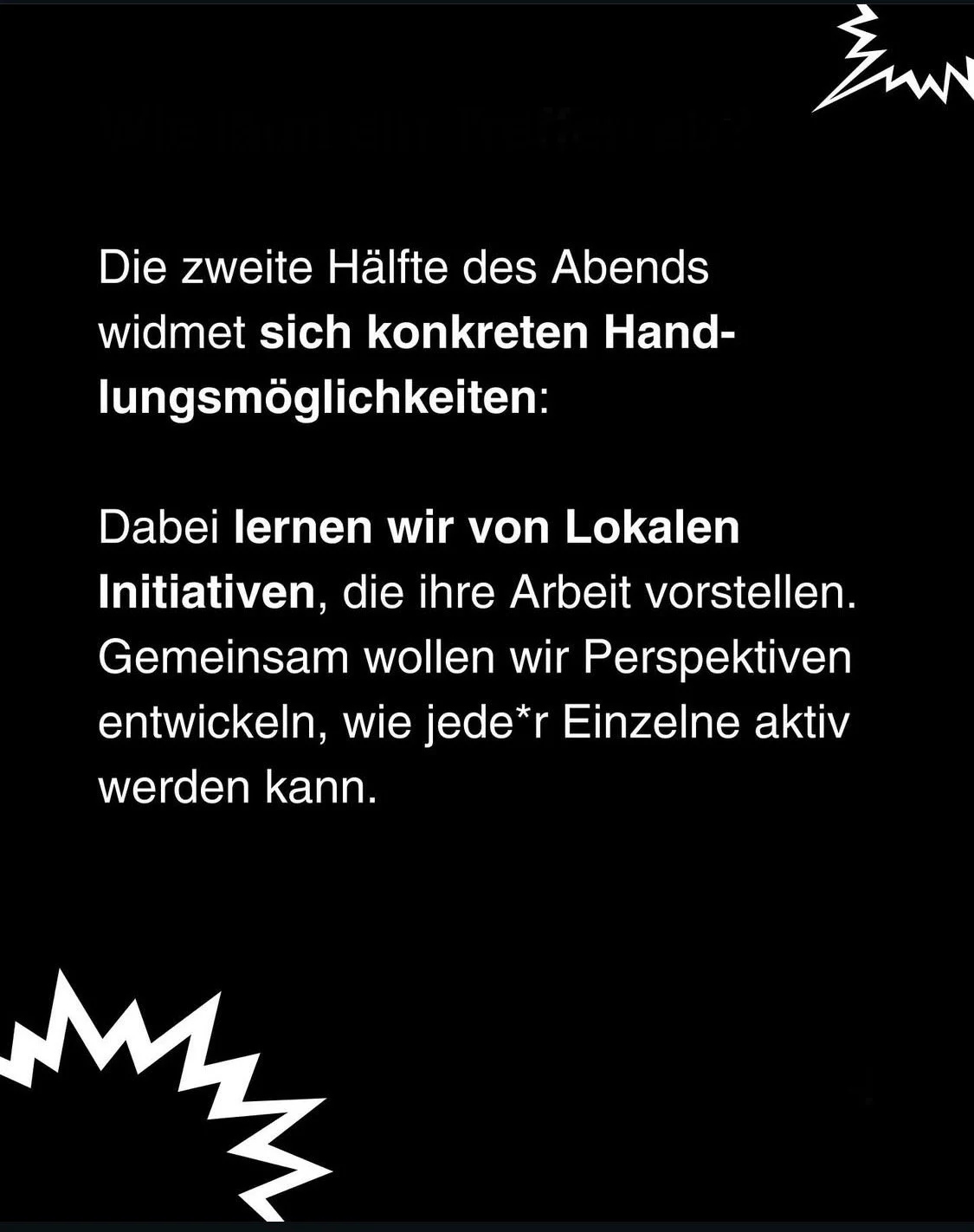 Bei unseren Treffen fragen wir uns: Wogegen, Wofür & Wie was machen?! Elementar dafür sind zentrale Orte in verschiedenen Stadtteilen sowie lokale Initiativen, die bereits aktiv sind und schon konkret was machen.